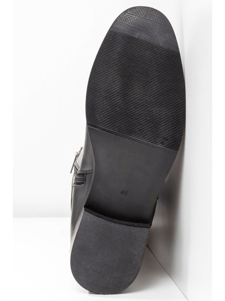 Ботинки с широким голенищем и декоративными пряжками. Боковая панель из текстурированной кожи служит привлекающим внимание элементом. Закругленные носки и боковые молнии дополняют классический спортивный стиль. Каблук высотой примерно 3,5 см, а профилированная подошва обеспечивает более надежную посадку.