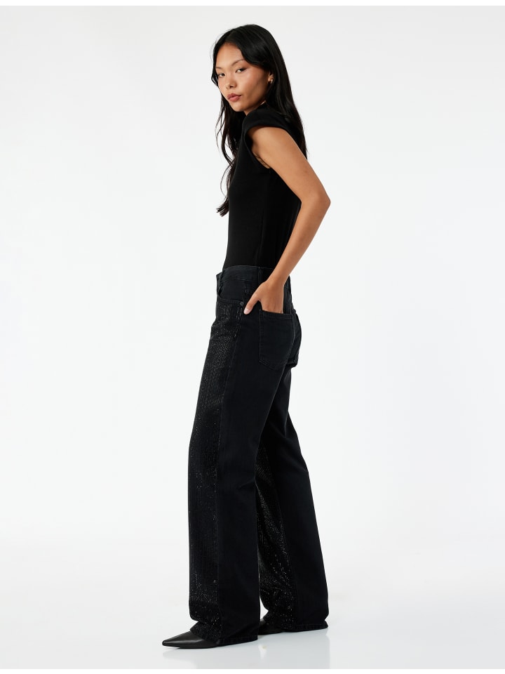 Эти элегантные джинсы прямого кроя добавят нотку гламура любому образу. Украшенные сверкающими стразами, они обязательно привлекут внимание. Высокая талия и прямой крой подчеркивают фигуру и обеспечивают комфорт. Идеально подходят для особых случаев или стильного повседневного образа в сочетании с вашей любимой блузкой или повседневной футболкой.