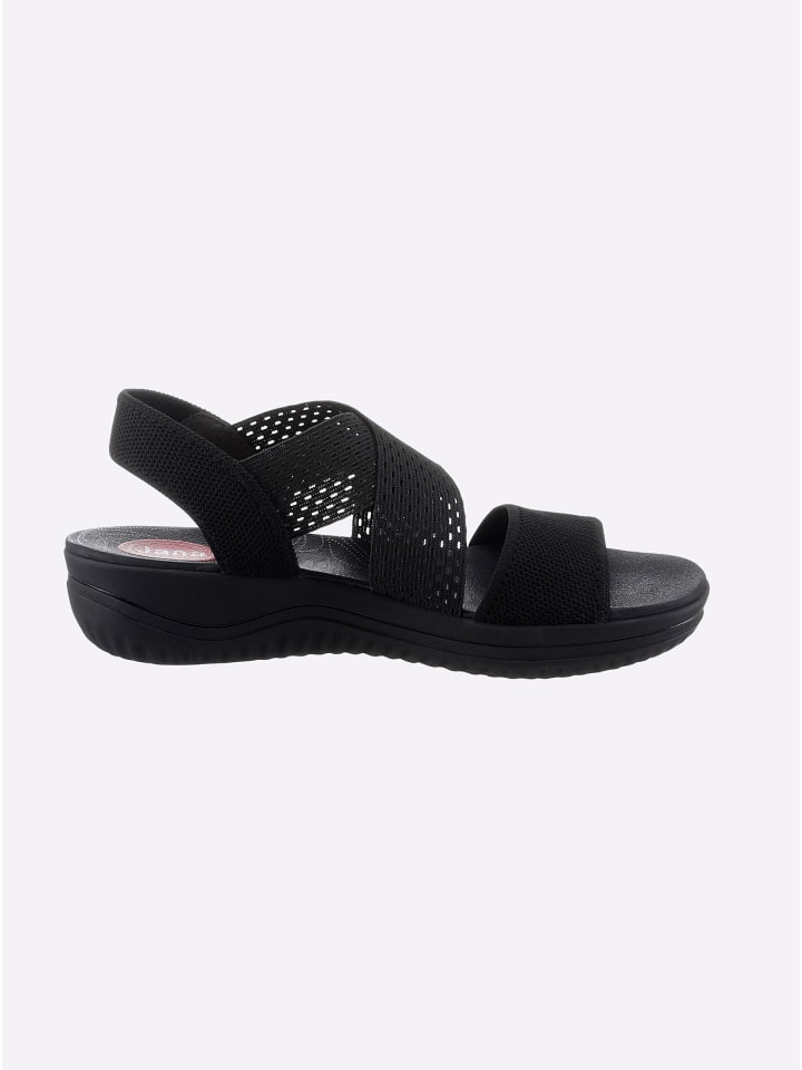 Ничего не сдавливает и не сдавливает - благодаря особой ширине! Сандалии Jana идеально подходят для широкой стопы. Эластичный верх идеально адаптируется к форме стопы. Верх выполнен из текстиля. Подкладка выполнена из текстиля и микрофибры. Мягкая подкладка. Удобная гибкая подошва TR с каблуком высотой около 40 мм. Ширина H для широкой стопы.