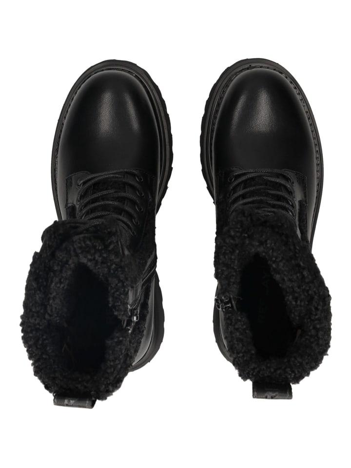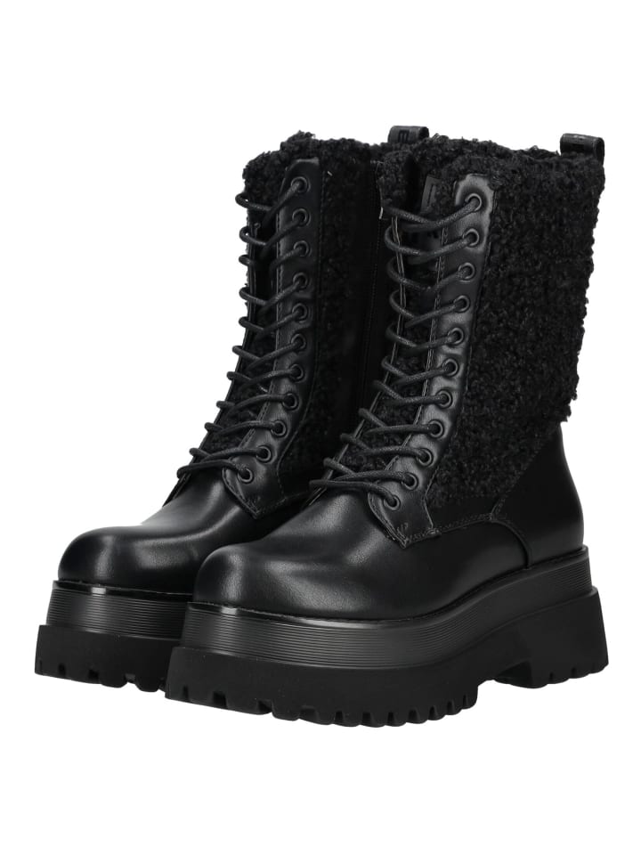 Эти модные ботинки на шнуровке сочетают в себе модный дизайн и зимнюю функциональность. Верх из гладкой кожи и мягкой ткани «тедди» придает обуви стильный вид с изысканным текстильным оттенком. Высокая платформа обеспечивает современный вид и оптимальное сцепление с зимней поверхностью. Внутри ботинки имеют уютную теплую подкладку, которая сохраняет ноги в тепле. Боковая молния позволяет быстро и легко надевать и снимать ботинки - идеально для повседневной городской жизни с чувством стиля.