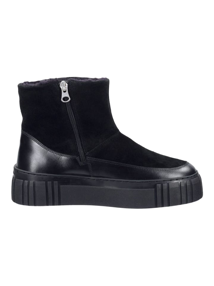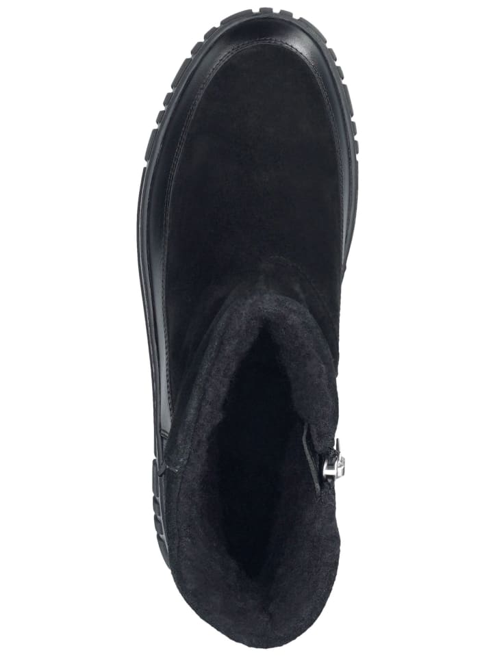 Модные ботильоны с теплой подкладкой и съемной стелькой. Сочетание гладких материалов верха, напоминающих замшу, создает современный и комфортный образ. Профилированная платформа обеспечивает хорошее сцепление и комфорт в холодные дни.