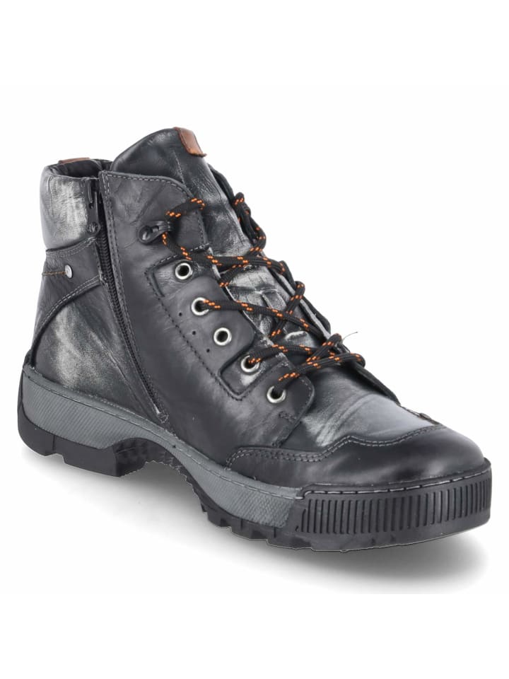 Универсальный спутник для холодных дней: зимние ботинки Krisbut серого цвета сочетают в себе прочную гладкую кожу с характерной состаренной отделкой. Закругленный носок и усиленные носок и пятка обеспечивают защиту, а теплая подкладка, текстильная стелька и мягкая стелька обеспечивают комфорт. Сочетание шнурков и практичных молний позволяет легко надевать ботинки и обеспечивает надежную посадку. Нескользящая, гибкая и упругая подошва обеспечивает уверенную посадку на скользких поверхностях. Размер соответствует размеру и легко адаптируется к повседневной носке. Модный совет: в сочетании с вельветовыми брюками, фланелевой рубашкой и пуховым жилетом это создает прочный повседневный зимний образ.