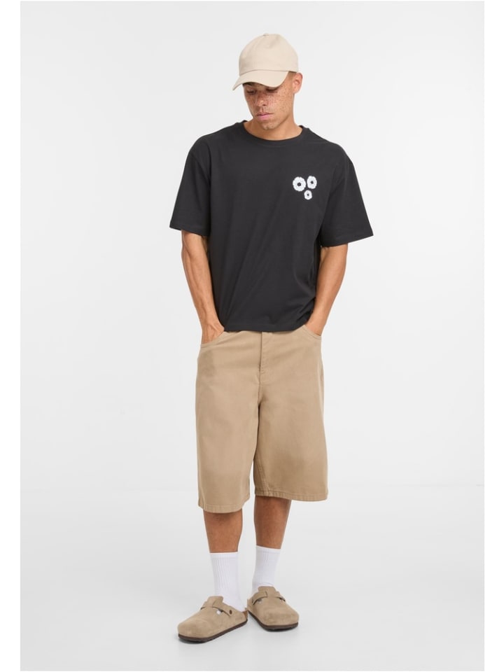 Футболка "Bold Flowers Cropped Oversize Tee" черного цвета Mister Tee