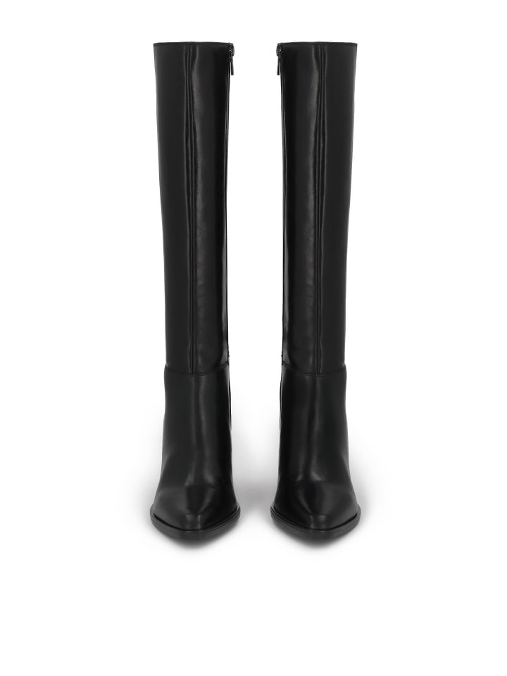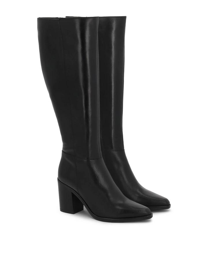 Эти черные сапоги - элегантная модель из высококачественной гладкой натуральной кожи в классическом черном цвете. Классическое голенище до колена с тонким, заостренным кроем изящно подчеркивает ногу и придает силуэту элегантный и пропорциональный вид. Сапоги оснащены прочным, широким каблуком-шпилькой средней высоты, что обеспечивает комфорт и изысканный вид. Изящная строчка добавляет изящный визуальный интерес дизайну, сохраняя при этом минималистичный характер обуви. Закругленный, слегка удлиненный носок и тщательное внимание к деталям подчеркивают высочайшее мастерство и классический стиль этой модели. Эти сапоги идеально дополнят как официальные дневные, так и вечерние наряды, сочетая в себе эстетику, функциональность и вневременную элегантность. Мягкая полуанилиновая овчина подкладка гарантирует исключительный комфорт, а искусственный мех согреет в холодные дни. Верх: кожа; Подкладка: другой материал; Стелька: другой материал; Подошва: другой материал