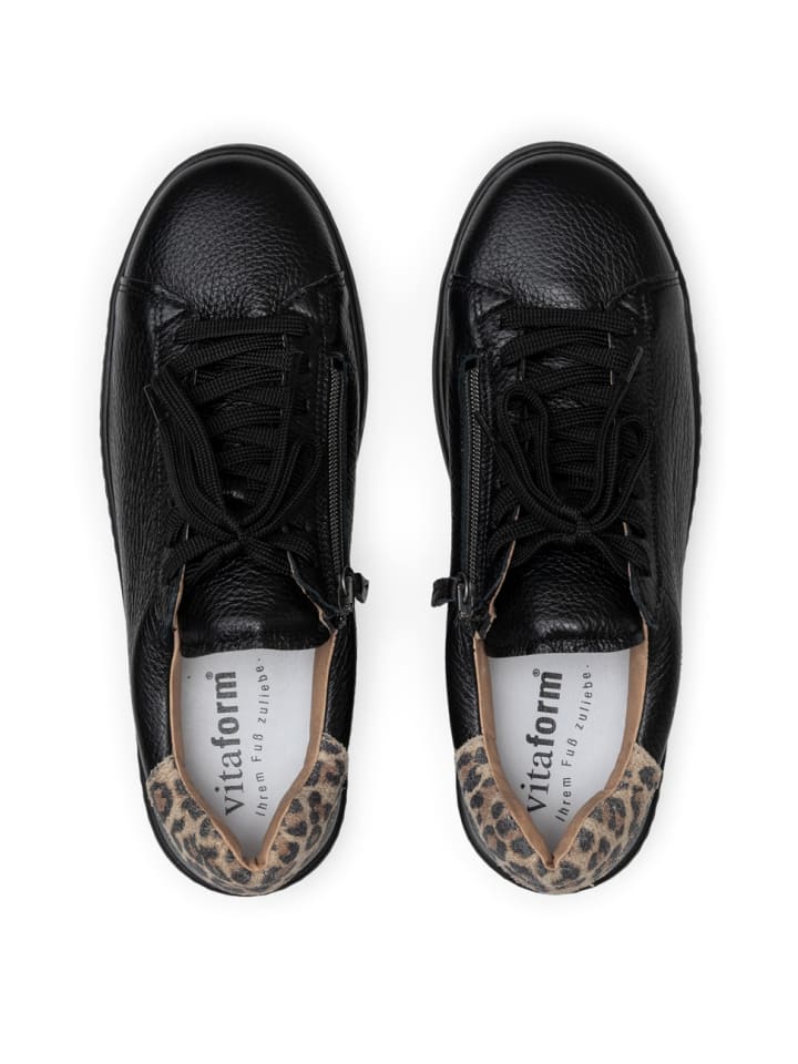 Элегантные женские кроссовки VITAFORM из мягкой, как масло, оленьей кожи сочетают в себе роскошный комфорт и стильную изысканность. Благодаря комфортной ширине (H) они обеспечивают комфорт даже для широкой стопы, не стесняя движений. Дополнительная молния обеспечивает легкое надевание, а сменная стелька с воздушной подушкой и чехлом из натуральной кожи обеспечивает бархатистую амортизацию при каждом шаге. Встроенный амортизатор заметно снижает нагрузку на пятку, суставы и спину - идеально для долгих дней на ногах. Стильная деталь с анималистичным принтом завершает образ, добавляя легкую нотку экстравагантности. Немного дикости вполне допустимо! Модель для женщин, которые ценят высококачественные материалы, продуманный комфорт и модную элегантность.
