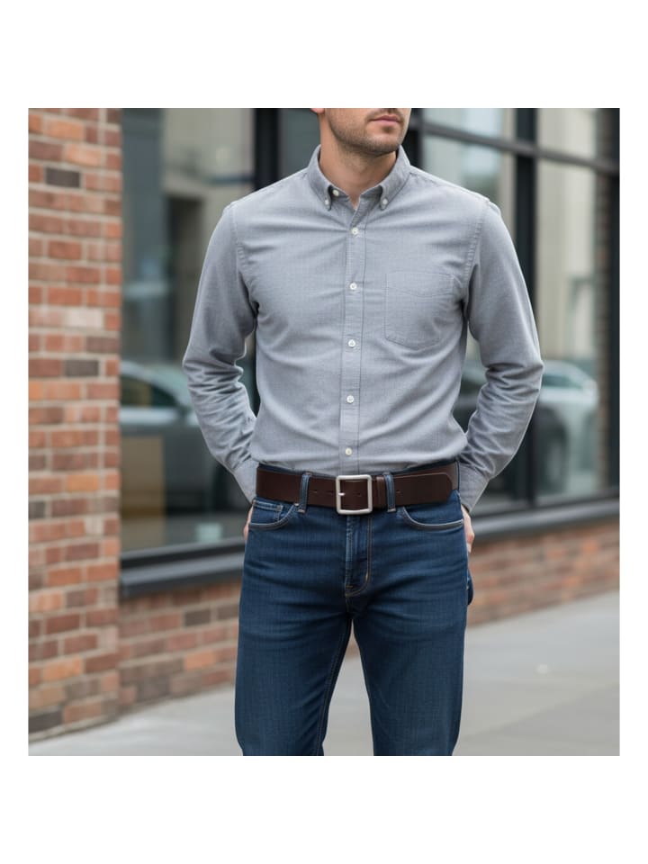 Простой высококачественный кожаный ремень унисекс с прочной пряжкой из матового серебра. Кожаный ремешок изготовлен из цельной коровьей кожи, практически не подверженной разрушению и долговечной. Кожа вырезана из цельного куска высококачественной шкуры и со временем покроется красивой, уникальной патиной.