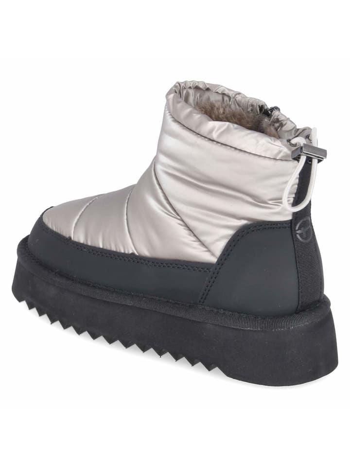 Эти зимние ботинки Tamaris подойдут как для повседневной носки, так и для зимнего отдыха. Простая в уходе матовая стеганая поверхность добавляет глубины темно-зеленому (оливковому) цвету, а теплая подкладка обеспечивает комфортное тепло. Мягкое голенище с эластичной застежкой и быстросъемным ремешком позволяет регулировать посадку, а боковая молния особенно удобна. Закругленный носок, текстильная стелька и усиленный носок обеспечивают исключительный комфорт. Массивная, толстая подошва с платформой 3,5 см подчеркивает современный характер и обеспечивает небольшую высоту. Материал верха: текстиль и синтетика; посадка по размеру. Модный совет: Непринужденный женственный зимний образ создается путем контраста стилей атласной юбки миди, свитера крупной вязки и утепленной короткой куртки.