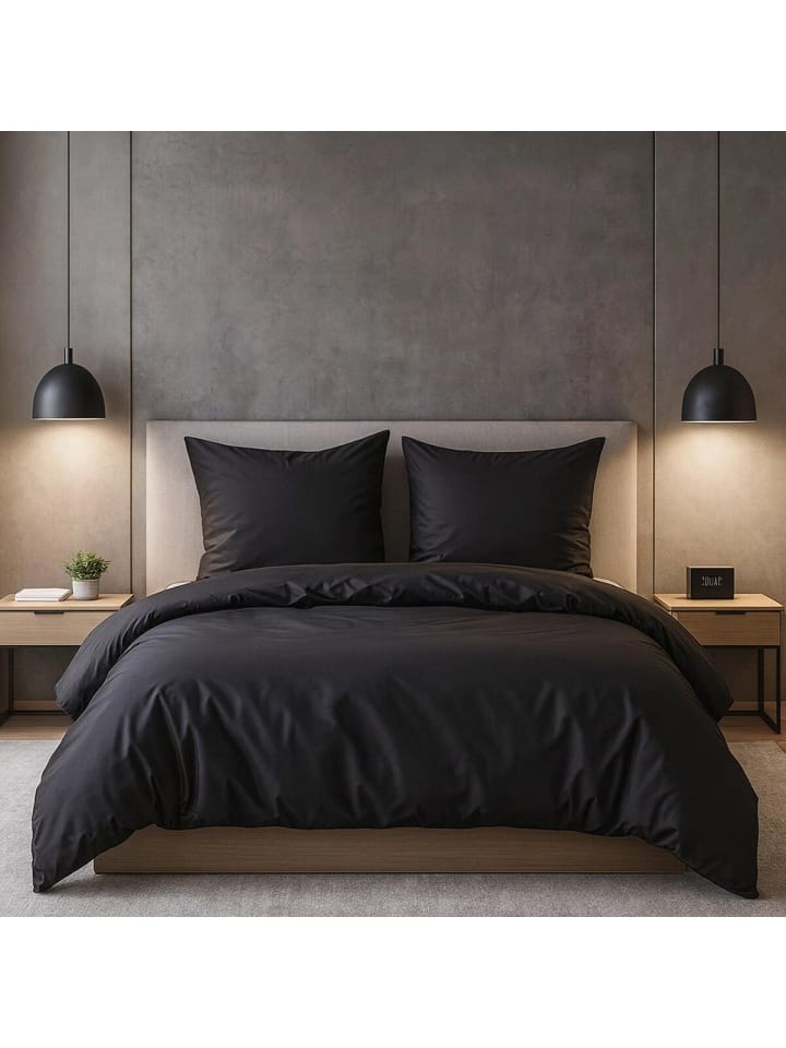 Чистое постельное белье черного цвета Traumschlaf, 200x220 (2x 80x80 см)
