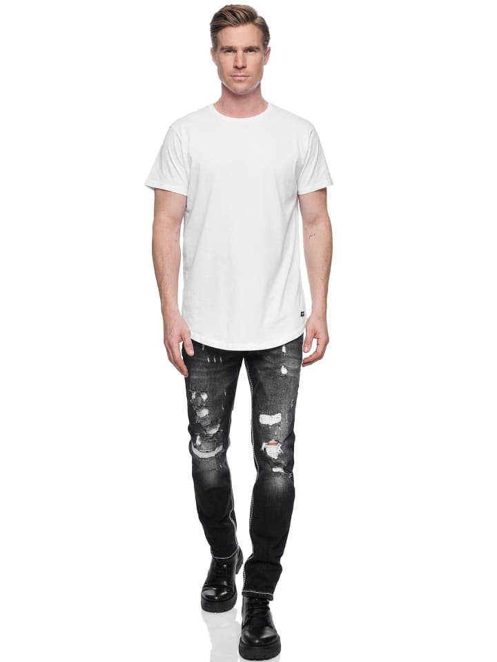 Джинсы "MINO" облегающие, эластичные, рваные брюки черного цвета, Rusty Neal