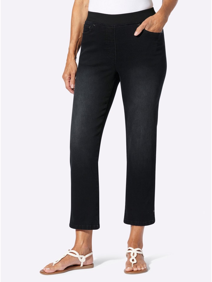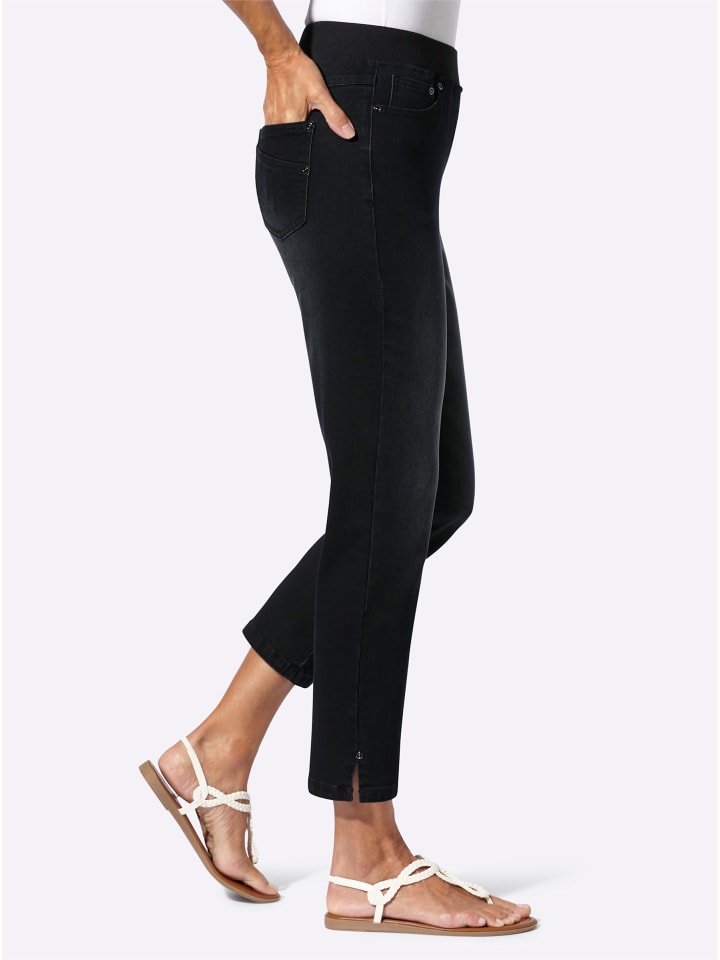 С легкостью создают отличную фигуру: модные джинсы 7/8, застегивающиеся на резинку, из эластичного хлопка. Модель с пятью карманами, ребристым поясом и закругленными карманами. Приталенная кокетка и задние карманы. Боковые разрезы по ноге. Длина брючины примерно 38 см. Соответствует инициативе «Хлопок, сделанный в Африке».