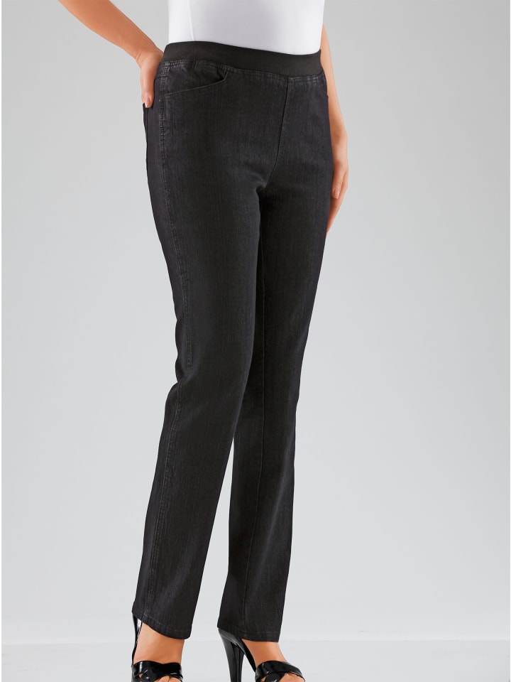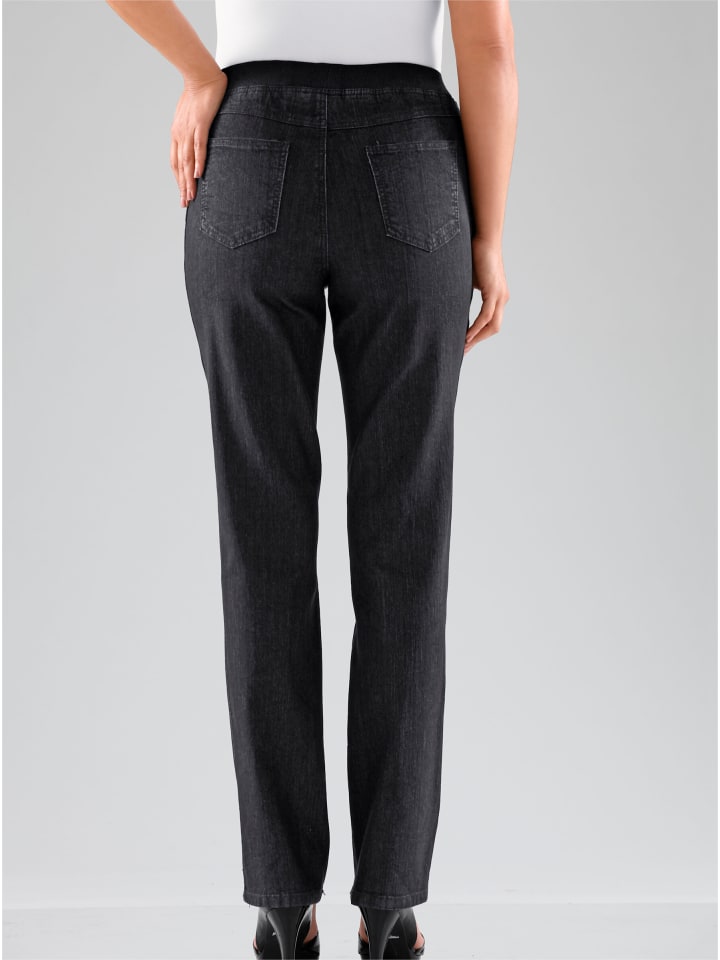 Гарантированный комфорт: в этих джинсах вы будете чувствовать себя совершенно комфортно, что бы вы ни задумали! Это стало возможным благодаря мягкой эластичной ткани и супермягкому эластичному поясу из комфортного трикотажа. Два практичных передних и два задних кармана. Кокетка сзади обеспечивает идеальную посадку. Ширина брючины примерно 40 см.