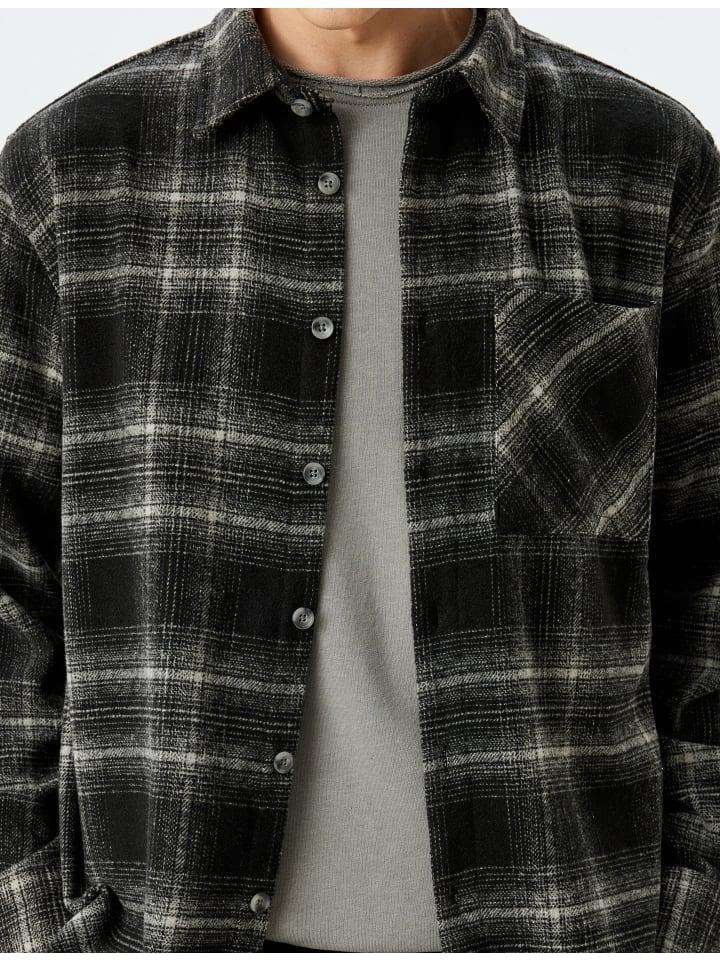 Обычный - Без особых особенностей|С пуговицами|Без печати/вышивки|В клетку|Обычный|Классический|Один накладной карман|Обычной длины|Длинные рукава|Воротник рубашки|Рубашка