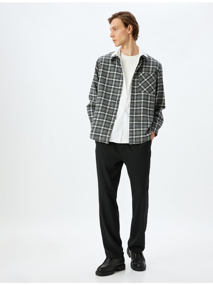 Обновленная модель|С пуговицами|Без печати/вышивки|В клетку|Обычная модель|Обычная модель|Один накладной карман|Стандартная длина|Длинные рукава|Отложной воротник|Рубашка