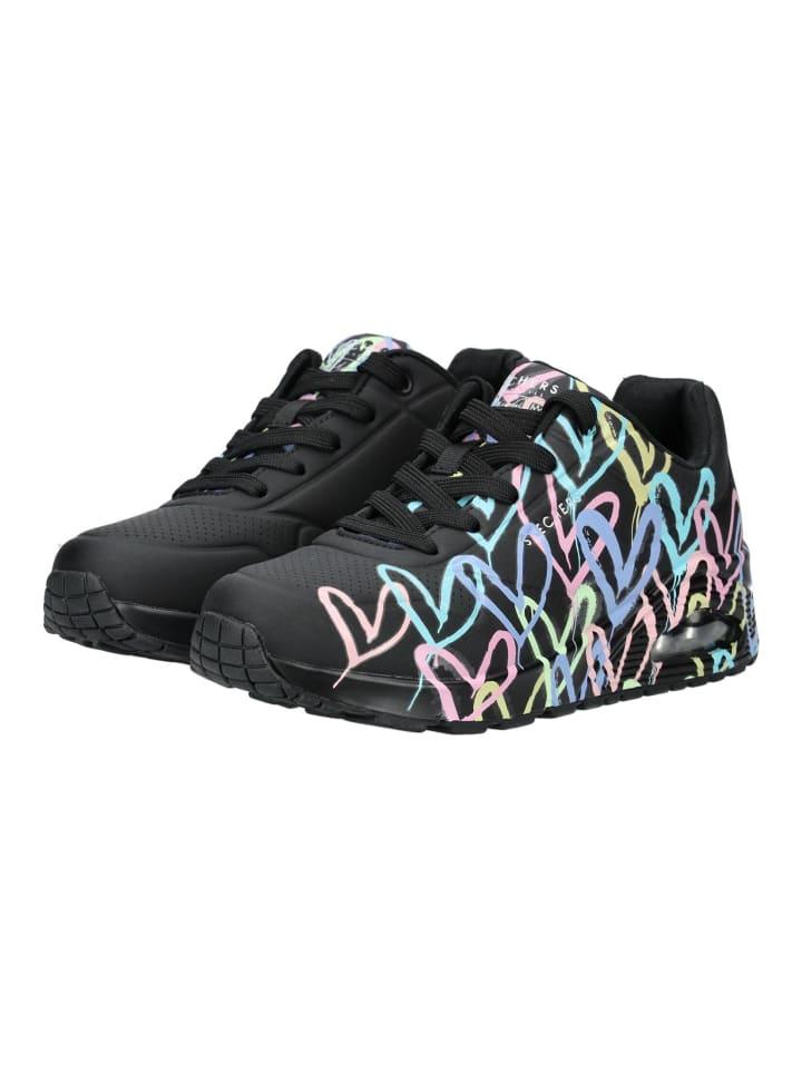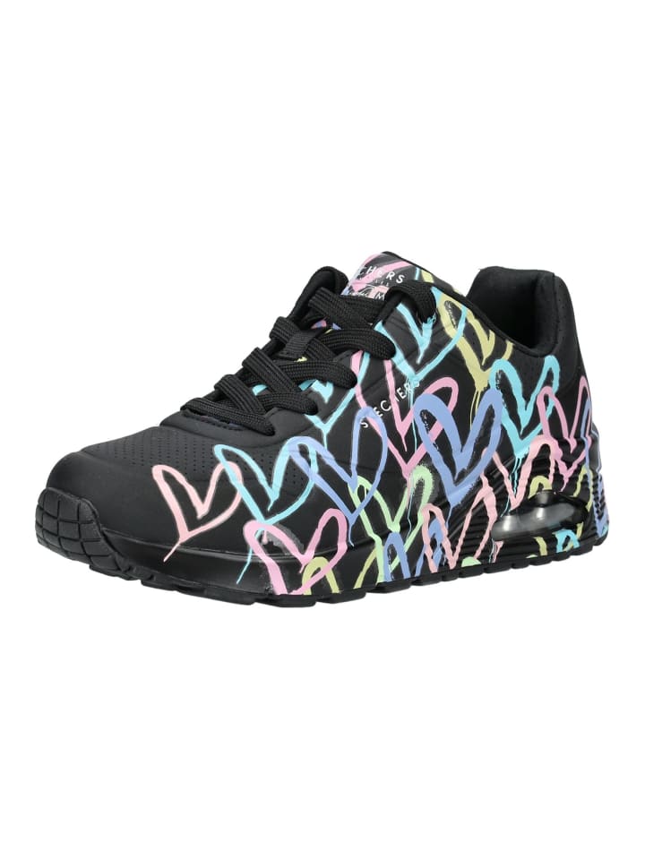 Классные низкие кроссовки Skechers из искусственной кожи. Яркий принт в виде сердца делает эти кроссовки по-настоящему привлекательными. Ультрамягкая текстильная стелька обеспечивает непревзойденный комфорт при каждом шаге и может быть заменена при необходимости. Кроме того, прозрачная воздушная камера в подошве обеспечивает хорошую амортизацию и является настоящей изюминкой дизайна.