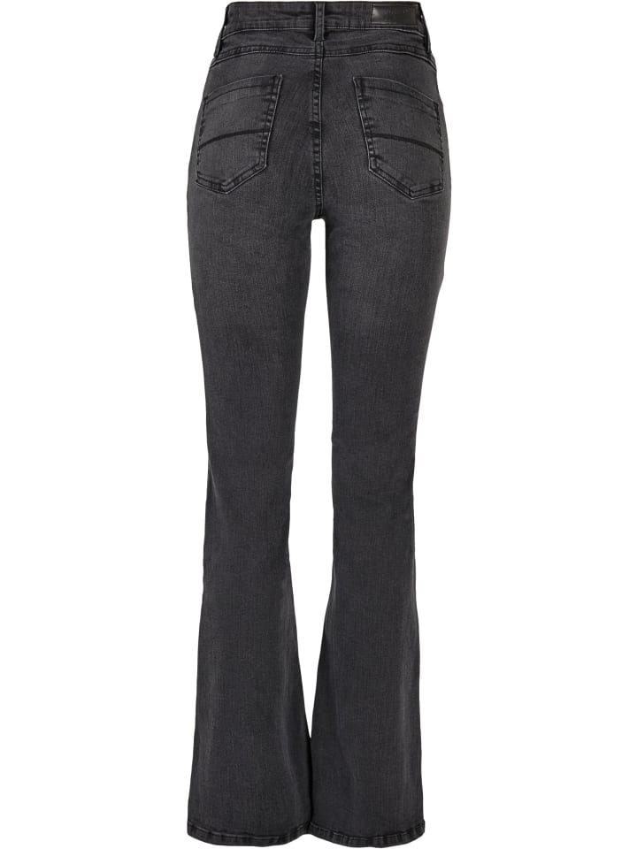 90-е вернулись с новой силой! Эти модные женские джинсы облегающего кроя с расклешенными от колена штанинами. Эластичный деним с добавлением эластана обеспечивает идеальную посадку. У джинсов также есть два боковых кармана и два накладных кармана сзади. Они удобно сидят на талии.