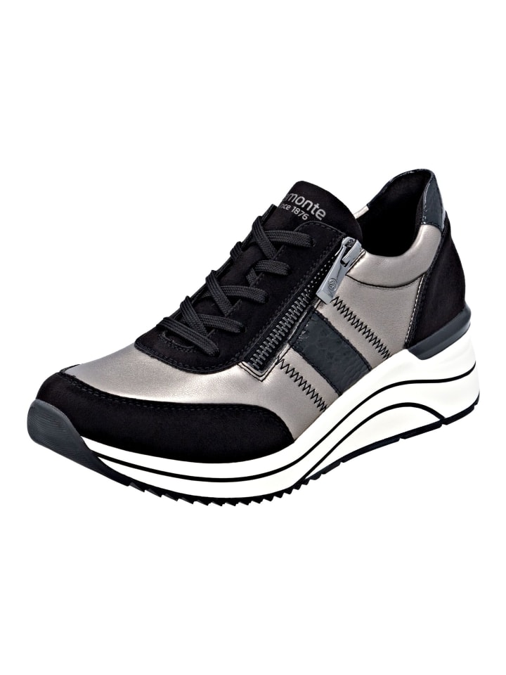 Индивидуальные, модные и стильные - эти кроссовки Remonte покоряют с первого взгляда! Благодаря усиленным носкам и пятке, а также молнии, эти современные и высококачественные кроссовки подойдут для самых разных занятий и отличаются превосходным качеством изготовления. Эта универсальная и модная модель также отличается стильным многослойным дизайном и съемной стелькой.