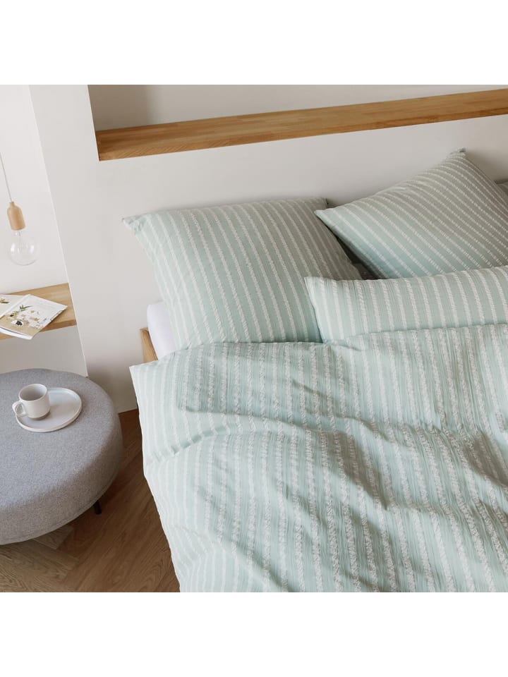 Это делает комплект идеальным для жарких летних ночей. Гофрированные полоски приятных цветов наполнят вашу спальню свежим воздухом. Прекрасное летнее сочетание красивых цветов и приятного легкого материала из чистого хлопка.