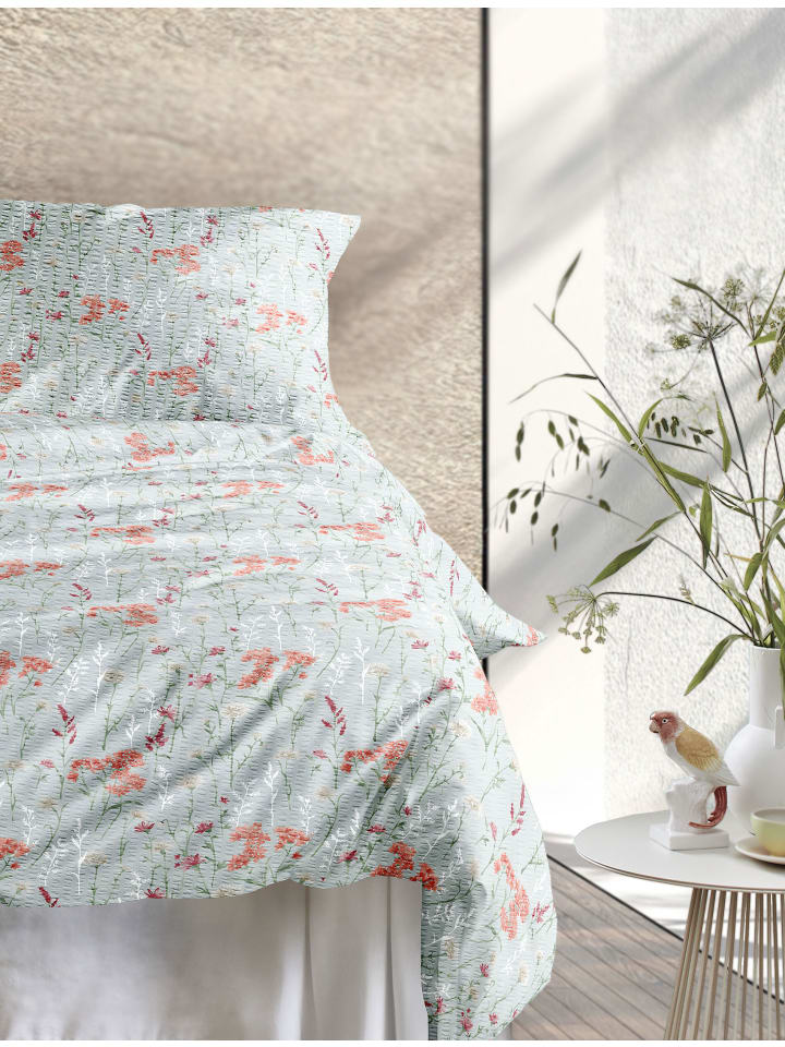 Постельное белье Easy из сирсакера в цвете шалфея Irisette, 135 x 200 + 80 x 80 см
