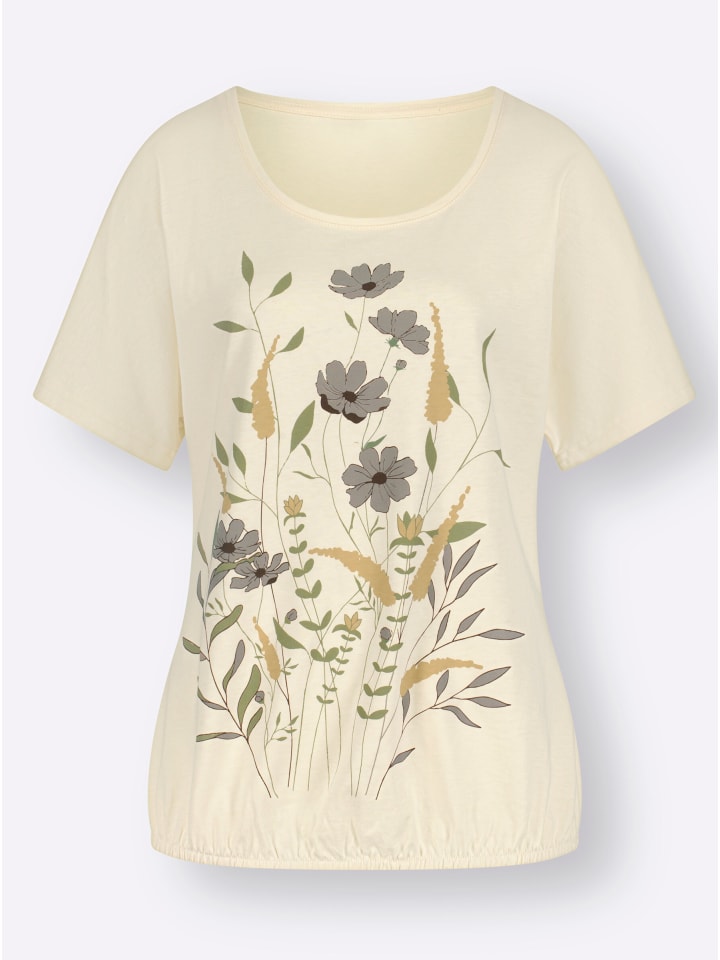 Невероятно мягкая рубашка с красивым цветочным узором спереди. Круглый вырез горловины и слегка приспущенные плечи, выполненные в модном стиле. Эластичный подол обеспечивает свободную посадку, позволяя ей свободно драпироваться на животе. Изготовлено из сертифицированного органического хлопка. Сертифицировано OCS.