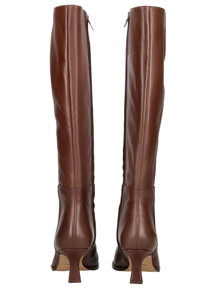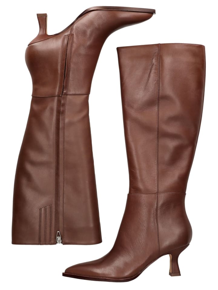 Эти высокие сапоги до колена сочетают в себе классическую элегантность и вневременную изысканность. Изготовленные из высококачественной гладкой кожи, они впечатляют своим изысканным внешним видом и чистым, женственным силуэтом. Тонкий каблук обеспечивает стильный внешний вид, не жертвуя комфортом. Молния сбоку позволяет легко надевать и снимать сапоги. Эти сапоги станут стильным дополнением к изысканным образам в прохладное время года, будь то с юбкой, платьем или брюками.
