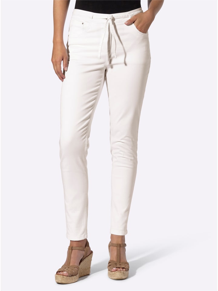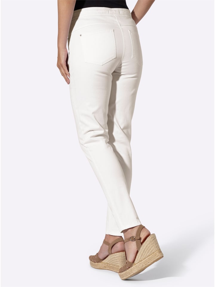 Джинсы с пятью карманами цвета экрю Heine