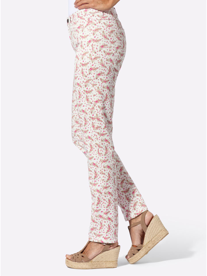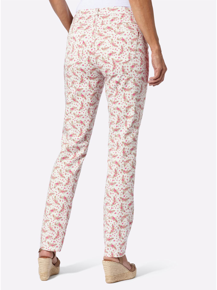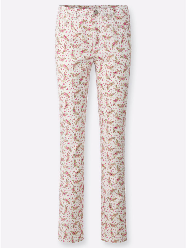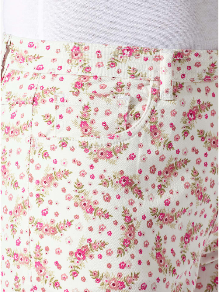 Просто наденьте их и расцветите по-новому: джинсы с цветочным принтом из саржи. Анатомический пояс со шлевками для ремня. Два круглых кармана и карман для монет спереди, два кармана и приталенная кокетка сзади. Длина брючины примерно 32 см. Ремень в комплект не входит.