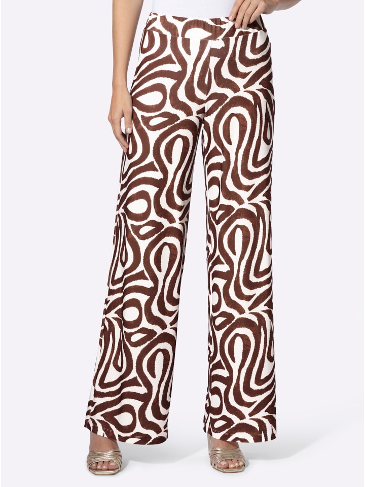 Брюки с принтом в оттенках экрю и шоколада Heine
