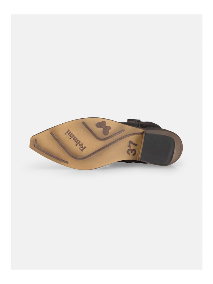 JOANNA E270 от Felmini - это ботинки в стиле вестерн, сочетающие простоту и элегантность. Изготовленные из гладкой черной кожи, они имеют острый носок, короткое голенище и боковые петли для создания непринужденного и повседневного образа. Легкие и удобные, они идеально дополнят яркие осенние наряды.