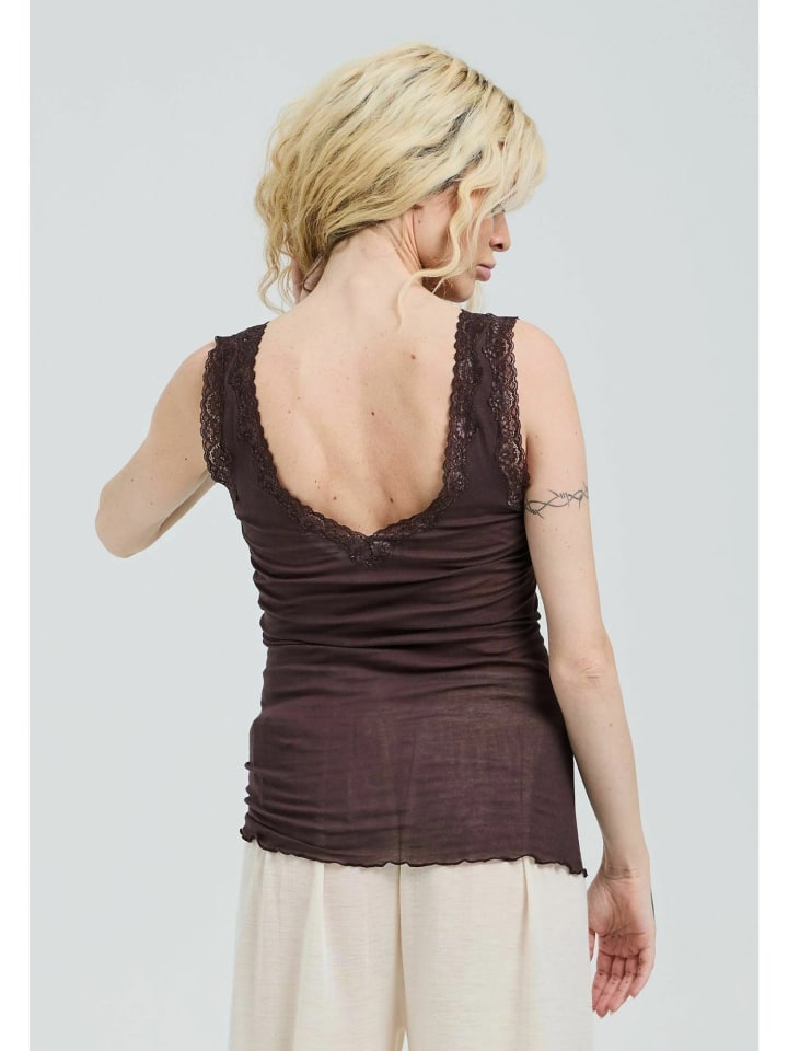 Подборка топов: от простых безрукавок до более изысканных моделей. Эти топы из переработанного шелка и мериносовой шерсти сочетают в себе комфорт и элегантность, идеально подходящие как для многослойного образа, так и для самостоятельного ношения.