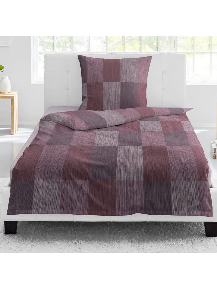 Фланелевое постельное белье ягодного цвета Bierbaum, 135x200 см (80x80 см)