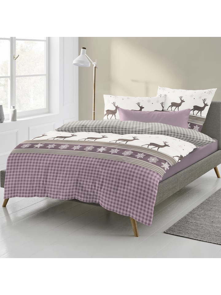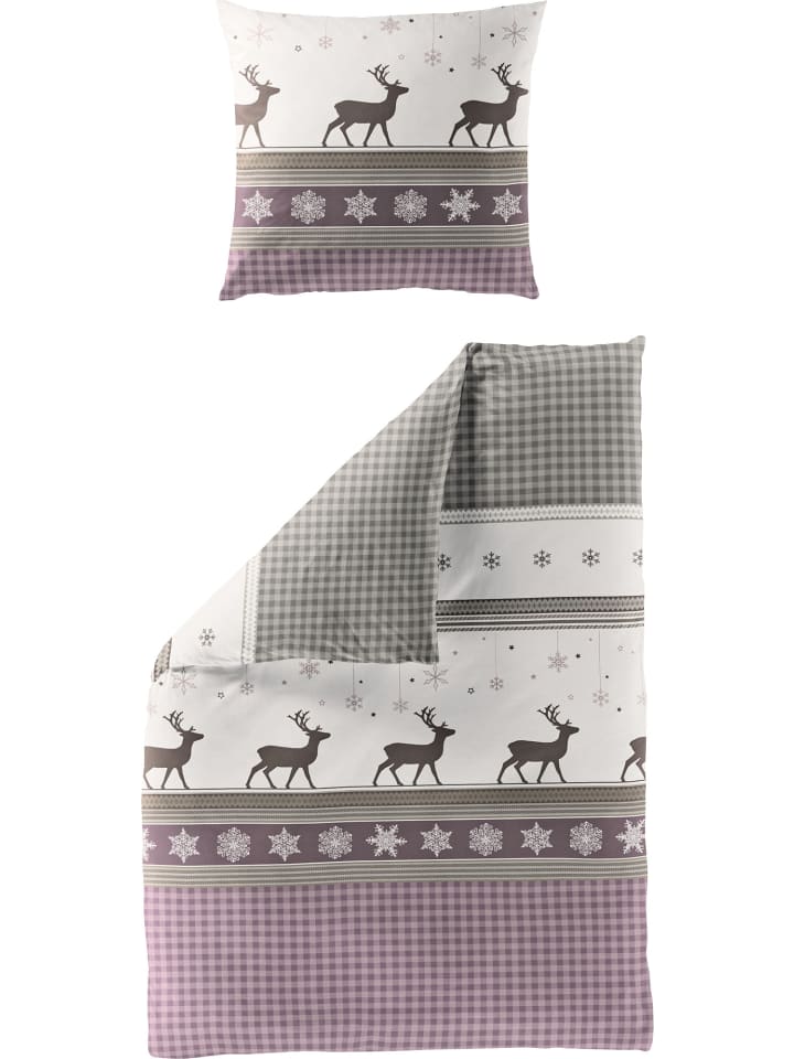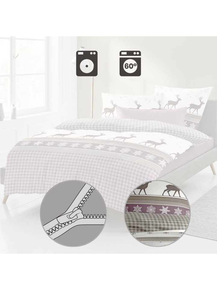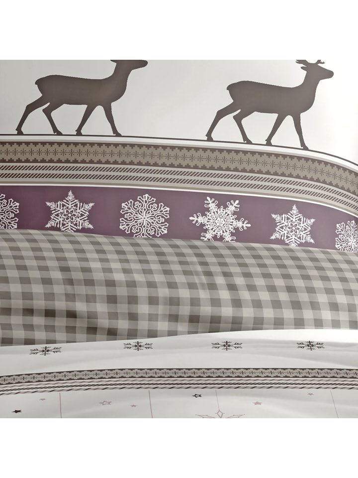 Постельное белье Bierbaum Flannel. Дизайн в стиле альпийского шале с оленями, ледяными кристаллами и клетчатым узором в клетку создаст в вашей спальне уютную, деревенскую атмосферу. Вам понравится уютно укутаться в эту мягкую ткань. Ее бархатистая, мягкая, ворсистая поверхность нежно ласкает кожу и окутывает приятным теплом. Настоящее удовольствие в холодное время года. Дышащее и терморегулирующее. Быстро надевается благодаря практичной молнии.