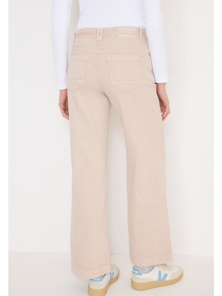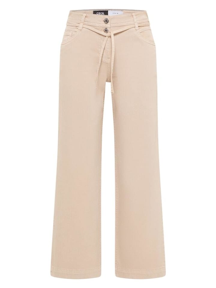 Джинсы клеш Wide Leg в цвете Eggshell White - ваш must-have для современного гардероба Испытайте максимальный комфорт и модный дизайн с нашими джинсами клеш Wide Leg в цвете Eggshell White. Эти джинсы сочетают в себе непринужденный свободный крой со стильным клешем, идеально подходя для любого случая и любого образа. Основные характеристики джинсов клеш Wide Leg в цвете Eggshell White: Свободный крой: для непринужденного и современного силуэта. Высокая талия: подчеркивает талию и обеспечивает выгодную посадку. Расклешенные штанины: расклешенный дизайн для элегантного и модного образа. Пояс на шнурке: регулируется индивидуально для оптимального комфорта. Стиль с 5 карманами: практичные карманы для всего самого необходимого. Эластичная хлопковая смесь: изготовлена из 98% хлопка и 2% эластана для максимальной свободы движений. Материал и уход Наши джинсы клеш Wide Leg в цвете Eggshell White изготовлены из высококачественной хлопковой смеси (98% хлопка, 2% эластана). Этот материал обеспечивает не только прочность, но и удобную растяжку, которая идеально адаптируется к вашему телу. Просты в уходе и сохраняют форму - идеально подходят для повседневной носки. Универсальное применение: будь то в офисе, на прогулке по городу или на выходных - широкие джинсы клеш цвета яичной скорлупы идеально подойдут для любого случая. Сочетайте их с элегантным блейзером для создания делового образа или с повседневной футболкой для создания непринужденного повседневного стиля. Почему вам понравятся эти джинсы: Модный расклешенный крой, высокий комфорт при ношении благодаря эластичной ткани, универсальные сочетания для создания различных образов, прочное и легкое в уходе качество, гибкие условия возврата и надежное обслуживание клиентов. Готовы к новому любимому образу? Закажите широкие джинсы клеш цвета яичной скорлупы прямо сейчас и насладитесь идеальным сочетанием стиля и комфорта! Доставка и возврат: Воспользуйтесь нашей доступной доставкой по Германии всего за 4,99 евро. Если вы останетесь недовольны, вы можете легко вернуть товар в течение 30 дней с момента покупки. - Проверенное качество Cecil - Хорошая посадка - Высокий комфорт при ношении Материал: - 98% хлопок - 2% эластан