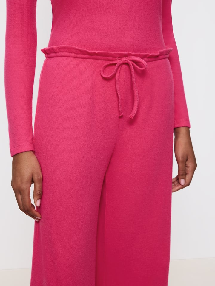 Эти длинные брюки сочетают комфорт и стиль благодаря широкому силуэту и регулируемому поясу с рюшами. Изготовленные из мягкой ткани с начесом, состоящей на 61% из переработанного полиэстера и на 33% из сертифицированной вискозы Lenzing, они обеспечивают тепло и уют.