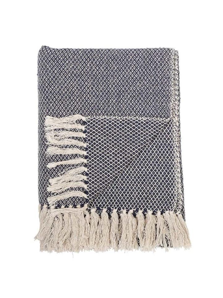 Уютное и теплое. Одеяло Bloomingville темно-синего и кремово-белого цветов - современный аксессуар для дома.