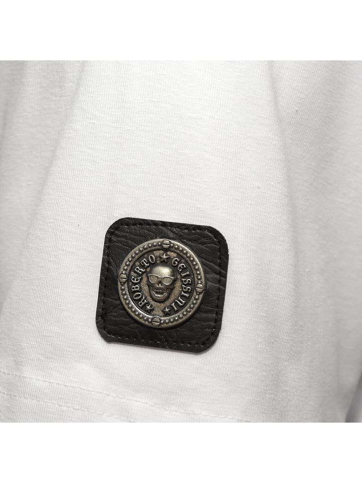 С вышитой геральдической лилией на левом рукаве, нашивкой из высококачественной искусственной кожи с заклепкой в виде серебряного черепа на правом рукаве и нашивкой с логотипом Roberto Geissini на левом плече.