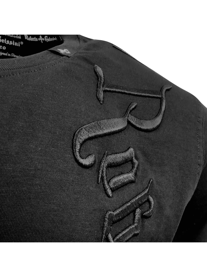 Крупная черная вышитая надпись «Roberto», выполненная с исключительным качеством, сразу привлекает внимание. Изысканная вышивка придает футболке изысканность и указывает на ее эксклюзивность.