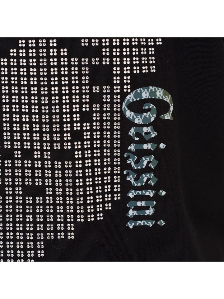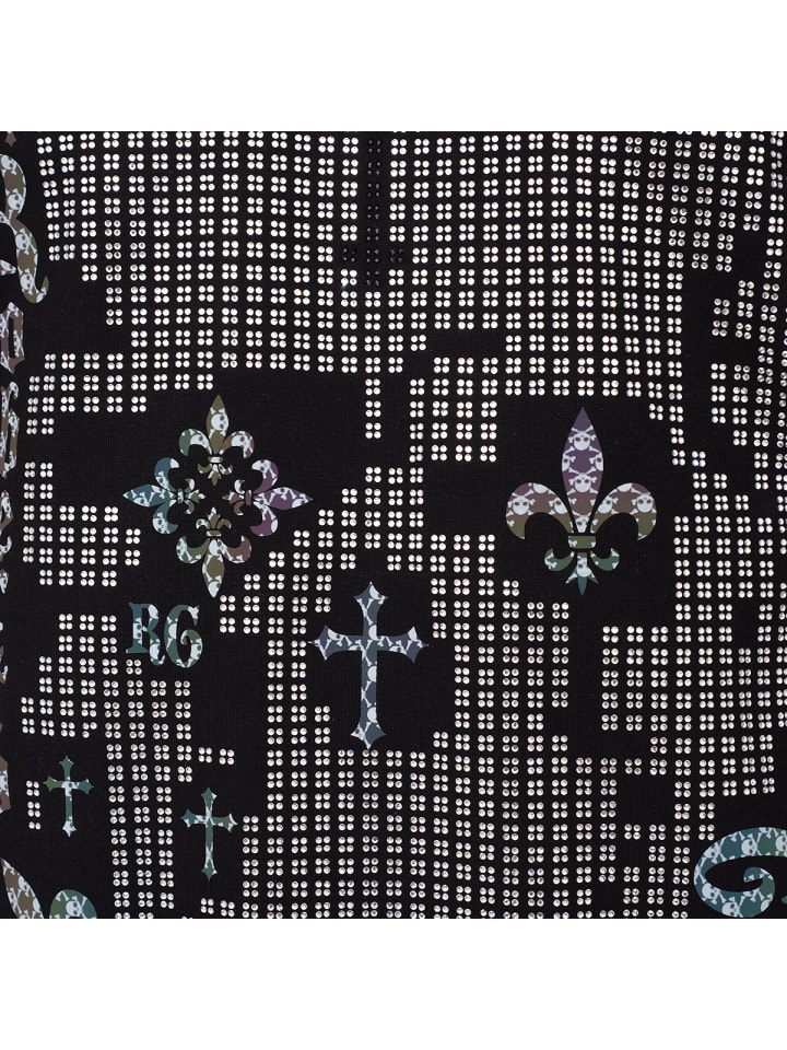 Сверкающие акценты: Узор черепа, вышитый серебряными стразами, занимает центральное место на футболке. Лилии и кресты, а также небольшие принты черепов дополняют дизайн. Название Roberto Geissini и логотип «RG» также интегрированы в тот же рисунок черепа. Высококачественная ткань: Мягкая ткань приятна для кожи и обеспечивает максимальный комфорт. Приобретите эту уникальную футболку прямо сейчас и выведите свой гардероб на новый уровень!