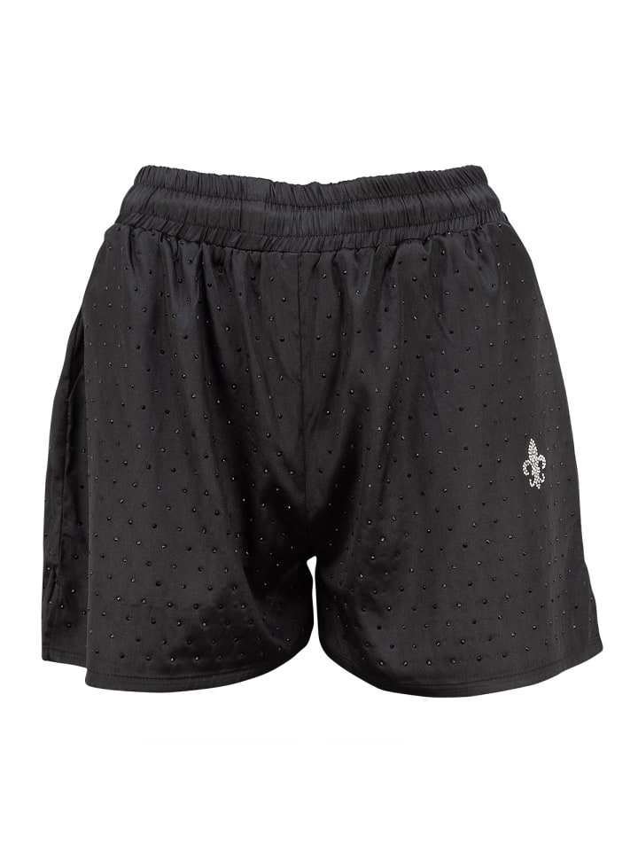 Изюминкой этих женских шорт, несомненно, являются бесчисленные стразы, искусно расположенные в виде сверкающих точек. Этот дизайн придает шортам нотку блеска и гламура, которые сверкают в каждом луче света.