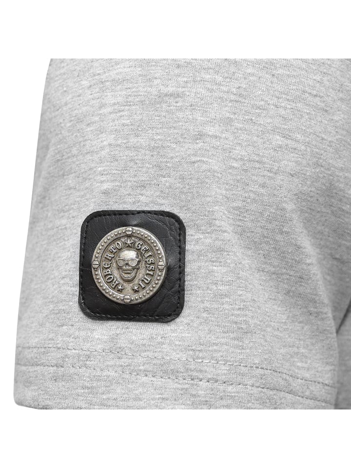 С вышитой геральдической лилией на левом рукаве, нашивкой из высококачественной искусственной кожи с заклепкой в виде серебряного черепа на правом рукаве и нашивкой с логотипом Roberto Geissini на левом плече.