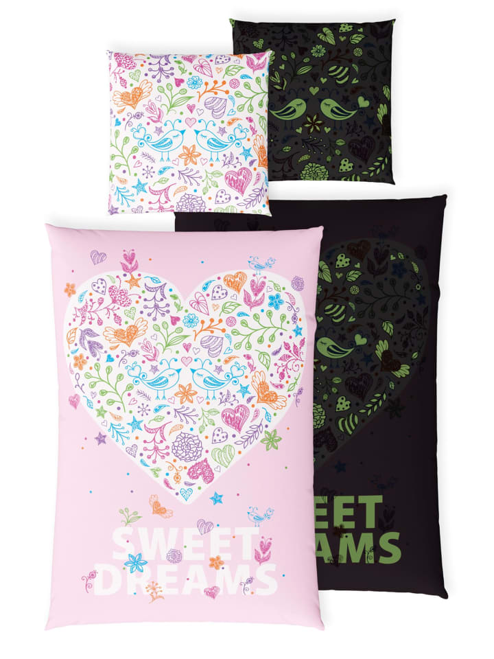 Детское постельное белье для девочек с рисунком сердца + 10 игр Carpe Sonno, 135 x 200 + 80 x 80 см