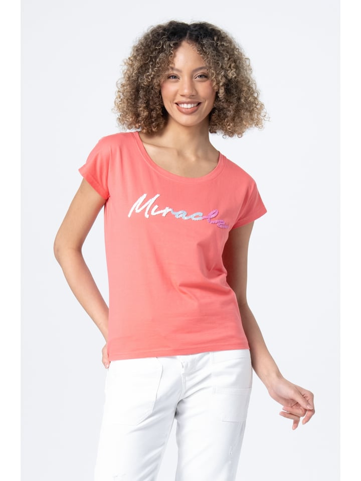 Женская футболка розового цвета с коралловым логотипом Refined Miracle. Эта футболка из актуальной летней коллекции MOD выполнена в сияющем коралловом цвете заката, который мгновенно добавит летнюю свежесть вашему образу. Мягкая ткань, состоящая из 95% хлопка и 5% эластана, приятна на ощупь и обеспечивает оптимальный комфорт благодаря легкой эластичности. Женственный, слегка приталенный крой подчеркивает ваш силуэт, а короткие рукава и классический круглый вырез горловины создают вневременной образ. Изящный логотип «Mirace» спереди выполнен в нежных тонах и добавляет модный штрих к в остальном простому дизайну. Удобный стиль для теплых летних дней. Эта универсальная базовая рубашка кораллового цвета впечатляет своей повседневной носимостью и легко сочетается с другими вещами. Белые брюки, как показано на модели, создают идеальный контраст с ярким цветом рубашки и создают свежий летний образ. Мягкая ткань приятна на ощупь, а эластан обеспечивает длительную сохранение формы и свободу движений. Чистота пошива и двойные усиленные швы на подоле и рукавах гарантируют долговечность даже после частых стирок. Спинка рубашки однотонная, что подчеркивает ее универсальность. Настоящий летний незаменимый предмет одежды, идеально сочетающийся с джинсами, шортами и юбками, предоставляя вам множество вариантов для создания стильных образов. Состав: 95% хлопок, 5% эластан.