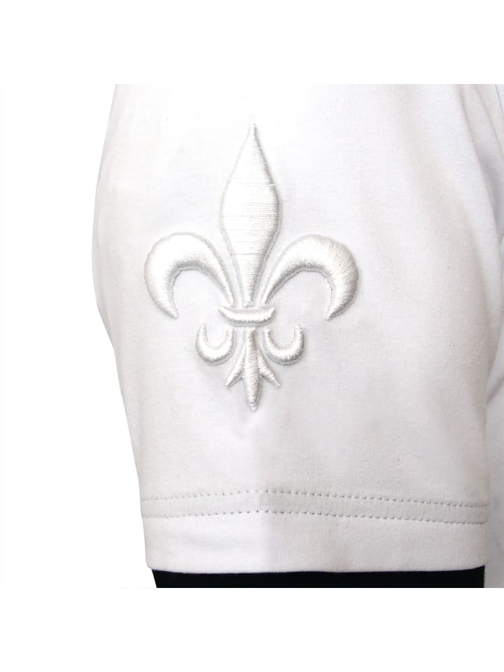 С вышитой лилией на левом рукаве, нашивкой из высококачественной искусственной кожи с заклепкой в виде серебряного черепа на правом рукаве и нашивкой с логотипом Roberto Geissini на левом плече.