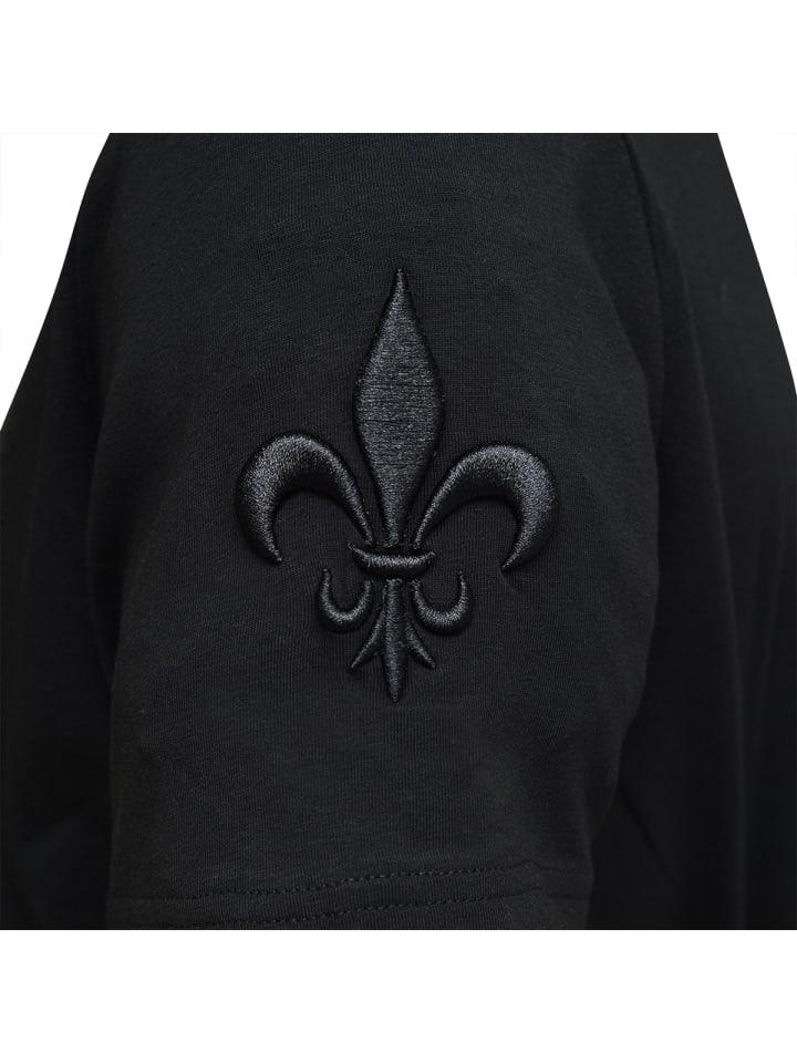 Вышитая геральдическая лилия на левом рукаве, нашивка из высококачественной искусственной кожи с серебряной заклепкой в виде черепа на правом рукаве и нашивка с логотипом Roberto Geissini на левом плече.