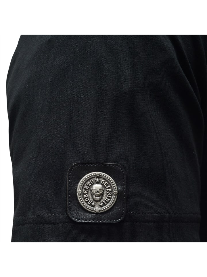 Идеальный стиль: эта рубашка впечатляет высоким качеством изготовления, изысканными деталями и эффектным дизайном спереди. На левом рукаве вышита лилия, на правом рукаве - нашивка из высококачественной искусственной кожи с серебряной заклепкой в виде черепа, а на левом плече - нашивка с логотипом Roberto Geissini.