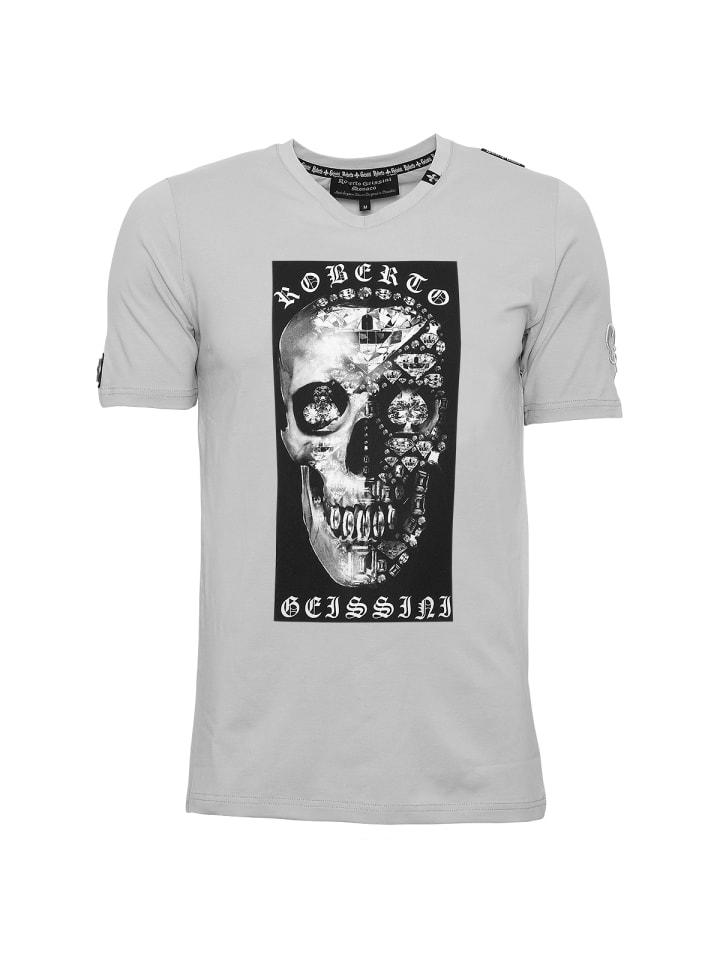 Футболка с драгоценным черепом, серая Roberto Geissini