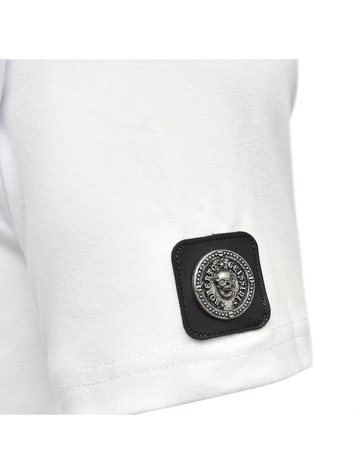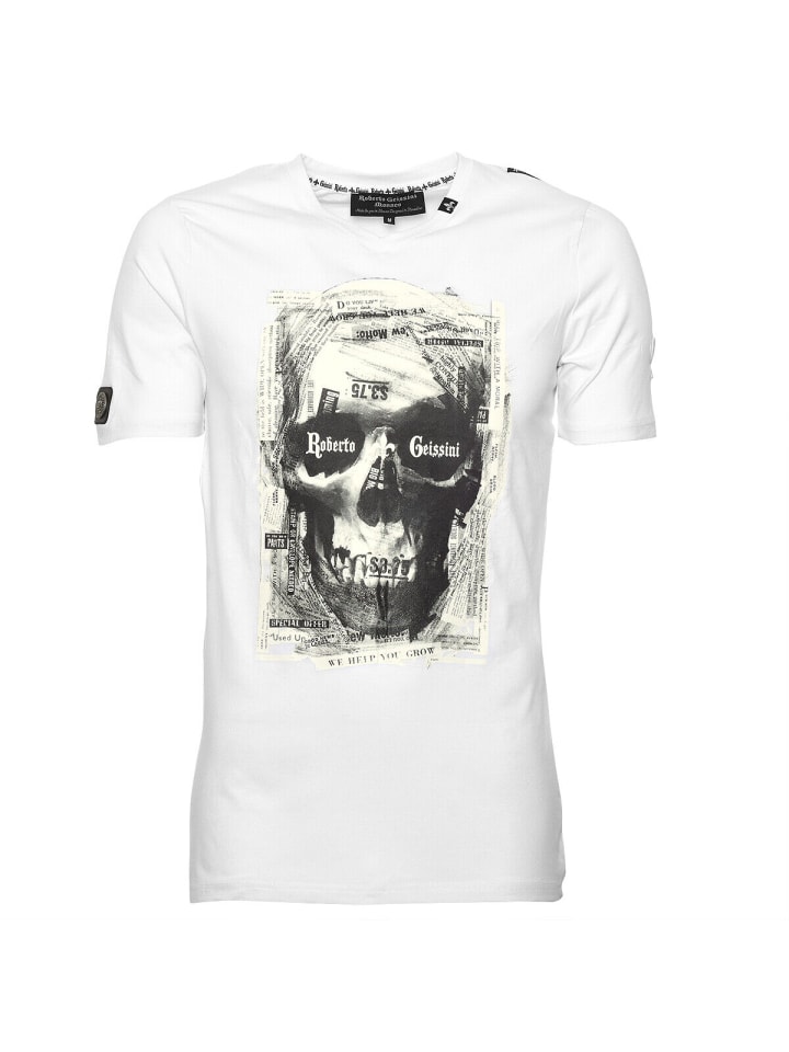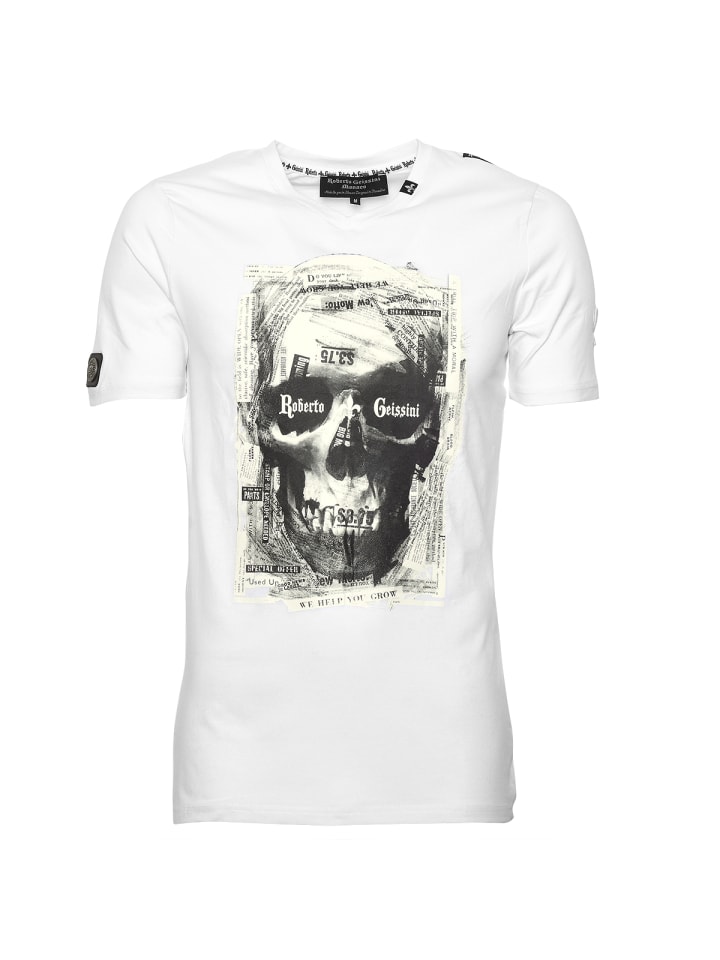 Вышитая геральдическая лилия на левом рукаве, нашивка из высококачественной искусственной кожи с заклепкой в виде серебряного черепа на правом рукаве и нашивка с логотипом Roberto Geissini на левом плече.