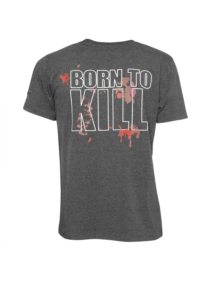 На спине - крупная надпись «BORN TO KILL» («РОЖДЕН УБИВАТЬ»).