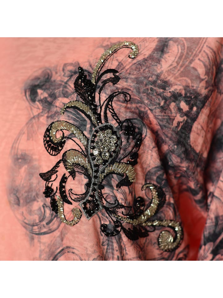 Цветочный дизайн дополняется элегантной ручной вышивкой бисером и высококачественными стразами.