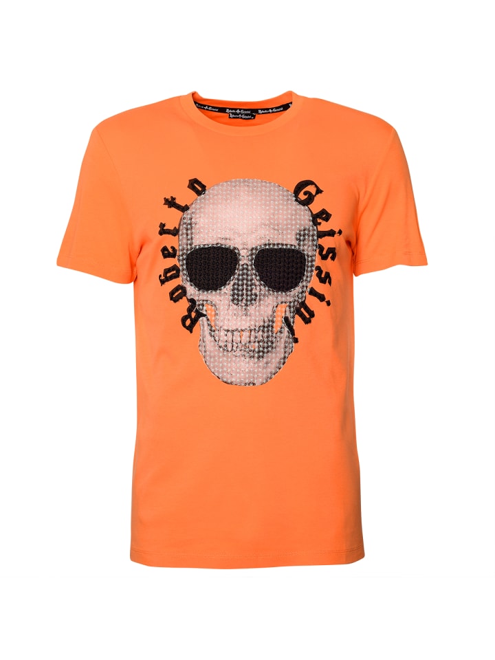 Футболка с вышитым черепом, оранжевая Roberto Geissini