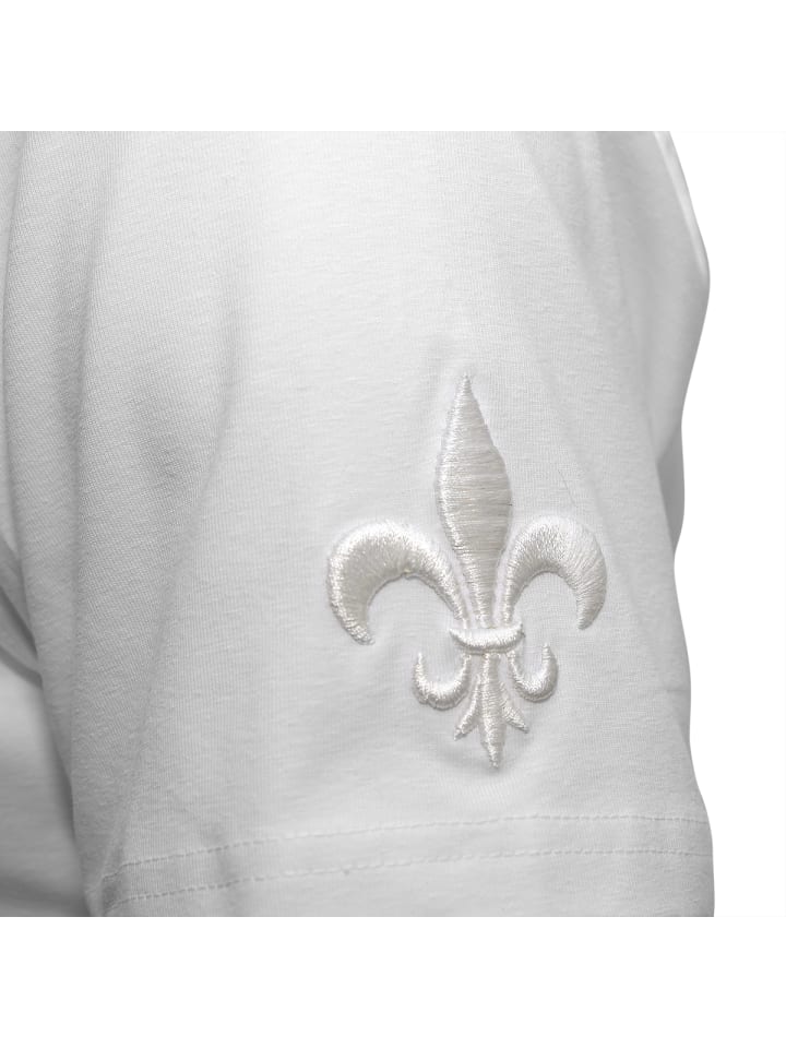 С вышитой геральдической лилией на левом рукаве, нашивкой из высококачественной искусственной кожи с заклепкой в виде серебряного черепа на правом рукаве и нашивкой с логотипом Roberto Geissini на левом плече.